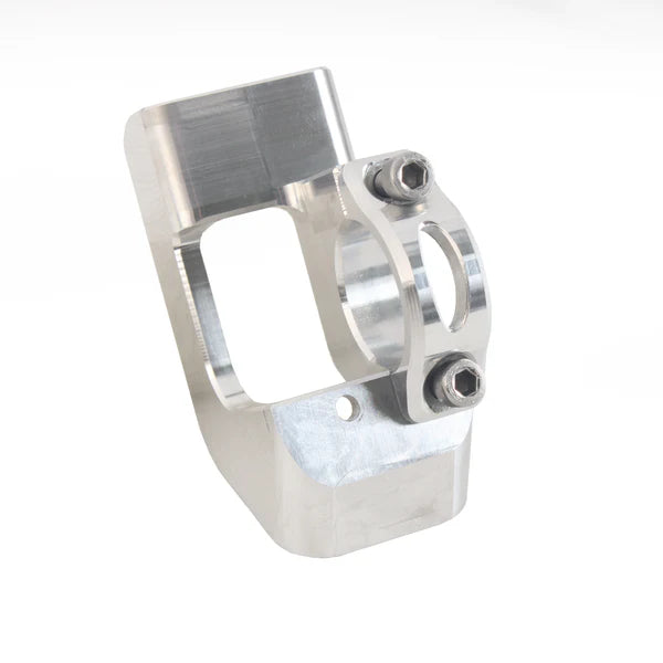 Solid one-piece 6061 billet aluminum protective case for EggRider display. This rugged case protects the fragile EggRider from damages as well as replaces the plastic bar clamp with an all-aluminum 2 screw clamp (similar to brake lever clamp).